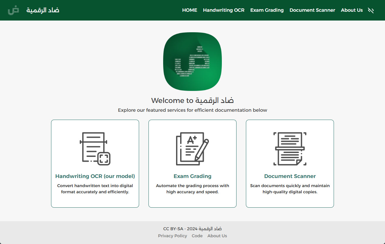 Arabic handwriting poses unique challenges due to its cursive nature, varying styles, and contextual letter shapes. Conventional OCR systems often struggle with these nuances, resulting in lower accuracy and reliability. Digital-Ḍād ض-الرقمية addresses these challenges by employing a state-of-the-art model that integrates Convolutional Neural Networks (CNNs) with Bidirectional Long Short-Term Memory (Bi-LSTM) networks, achieving a notable accuracy improvement—from an 87% baseline to an impressive 97%.